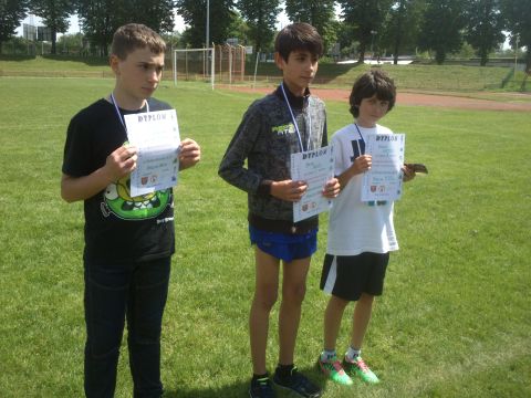 | Marta Ligocka (I. miejsce) i Natalia Bentka (III. miejsce) - bieg na 300 m | Kamil Przybyszewski (II. miejsce) - pchnięcie kulą |